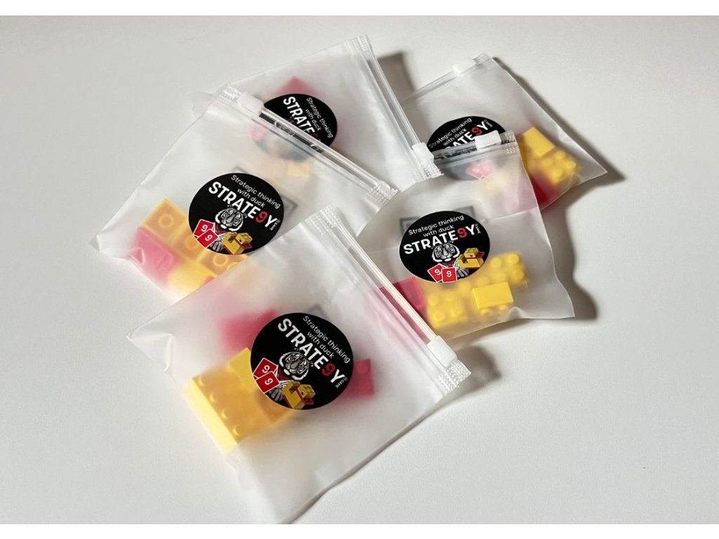 5 samostatných sad LEGO® Duck Challenge – každá sada má 6 kostek, uložených v praktickém, opakovaně použitelném sáčku. Každý účastník tak dostane vlastní balíček připravený k okamžitému použití.